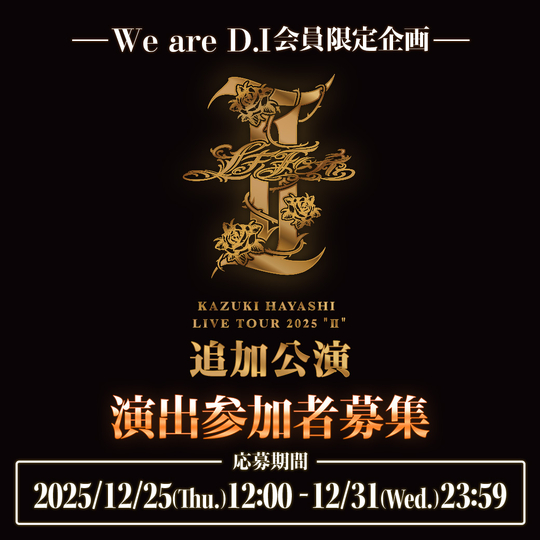 『林 和希 LIVE TOUR 2025 "Ⅱ"』追加公演でも、We are D.I会員限定演出参加企画を行うことが決定しました!!