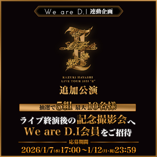 『林 和希 LIVE TOUR 2025 "Ⅱ"』<追加公演>ライブ終演後の記念撮影会へ、We are D.I会員の皆さんを抽選でご招待します!